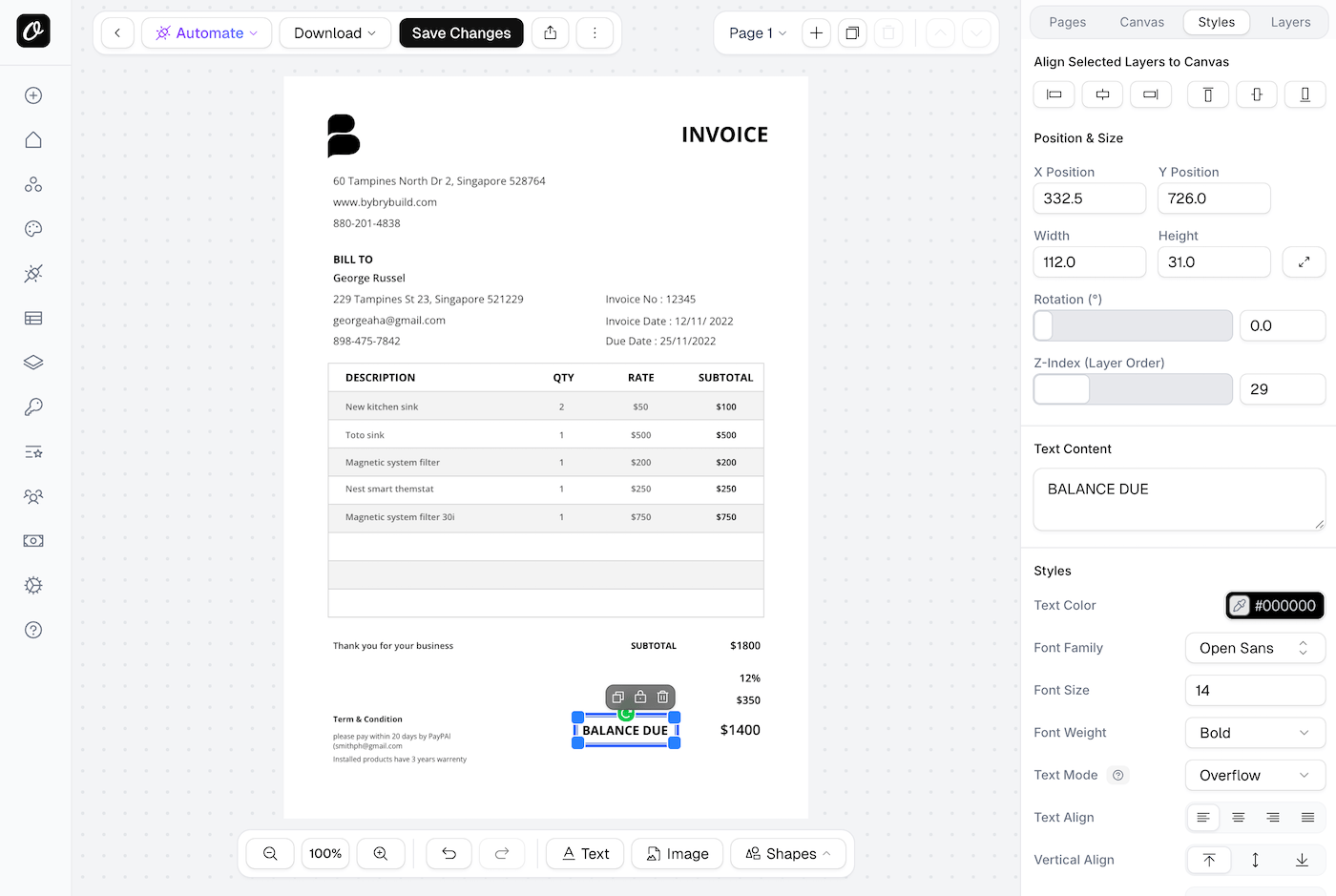 In Orshot's Studio, you can customize your invoice template to match your brand:
