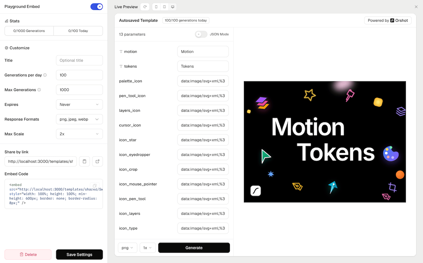 You can now share any Orshot Studio template as a live generator through Playground Embeds.