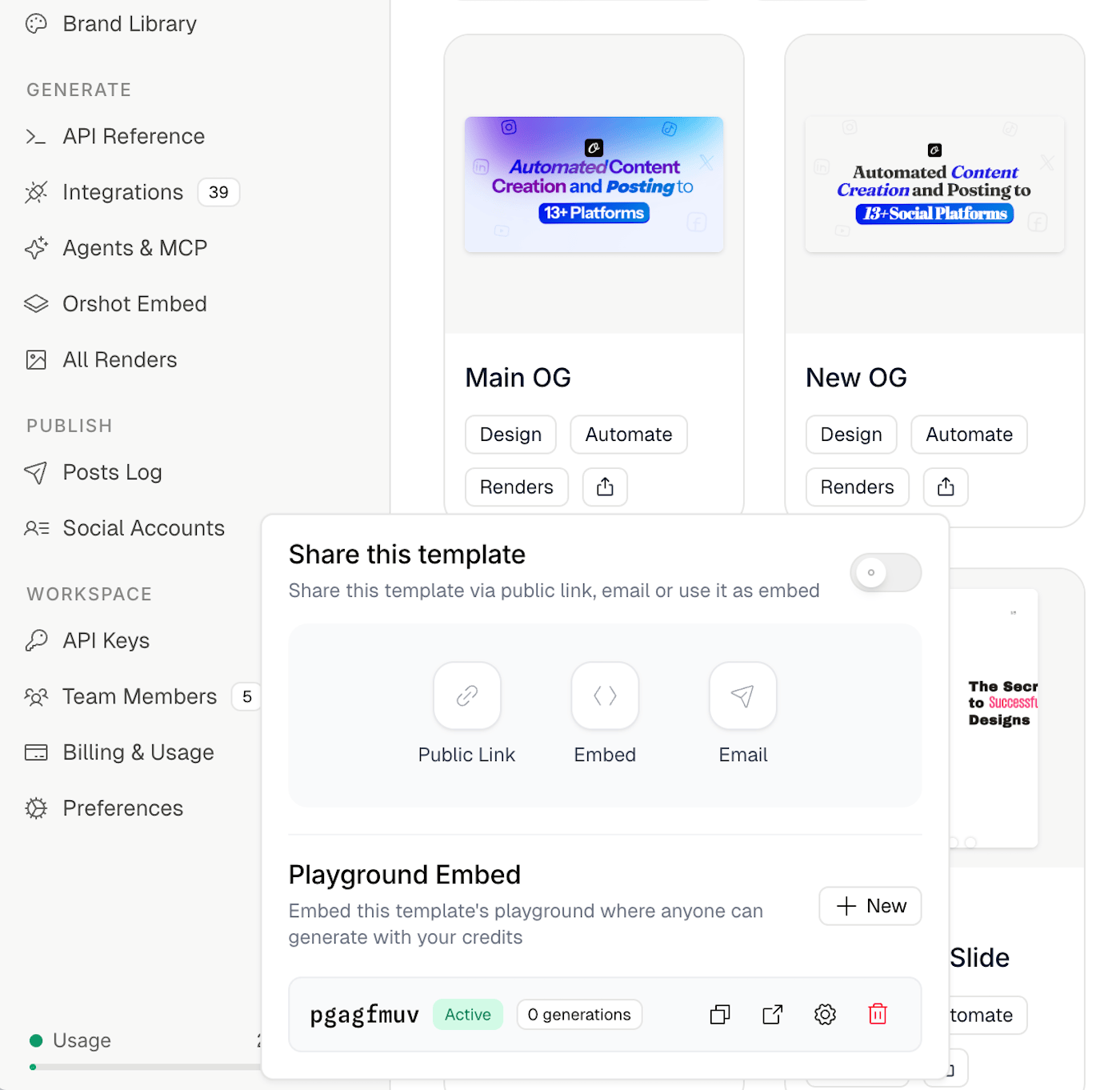 Open any template in Orshot Studio, click Share, and create your first embed. Full docs at Embedding Playground.