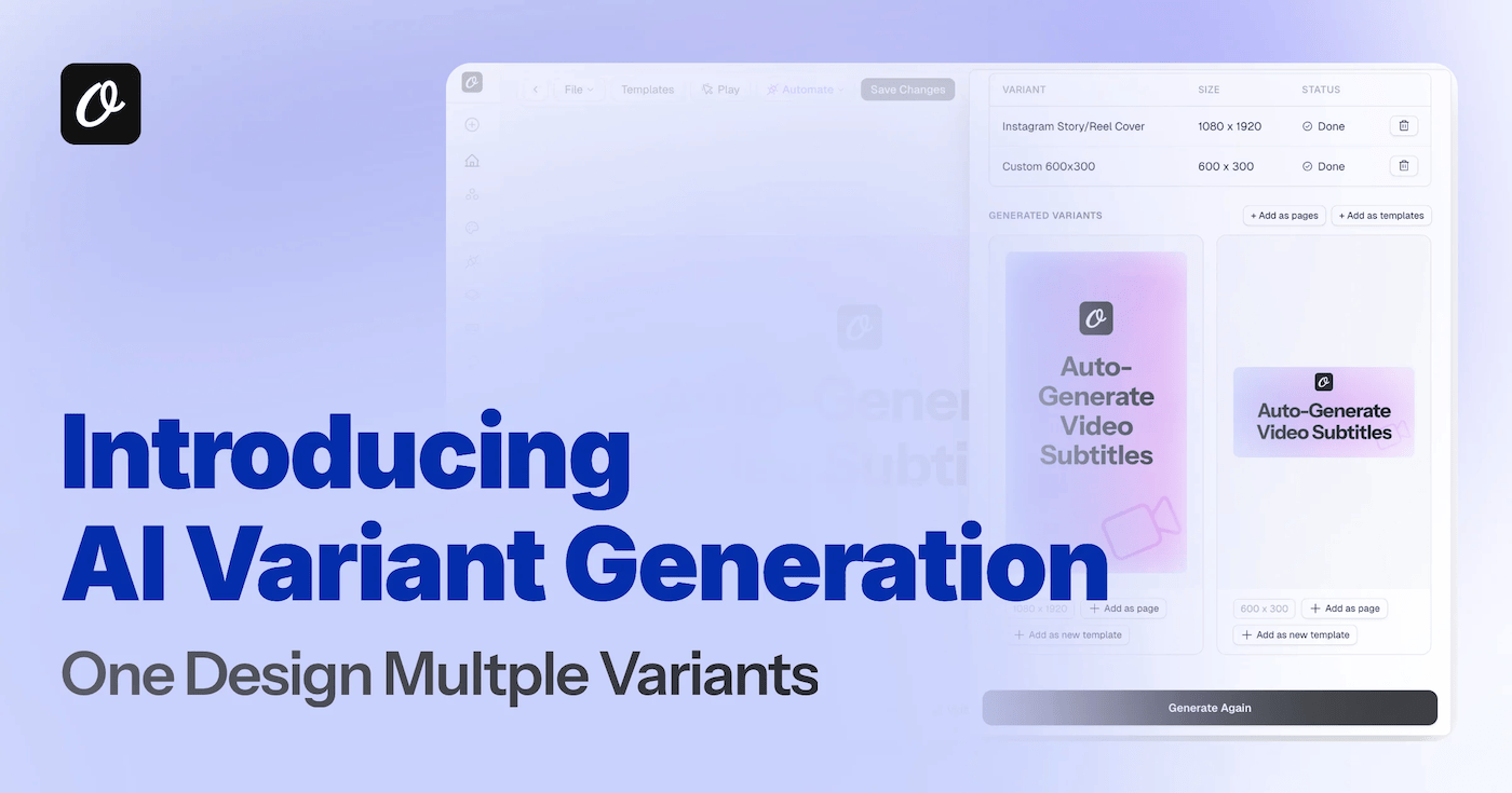 Orshot Studio Embed is the opposite approach. One line of code gives you a full white-label design editor in your app. Your users can create designs and download images and PDFs directly – no infrastructure to manage, no SDK maintenance. Need video generation? The REST API is included for that.