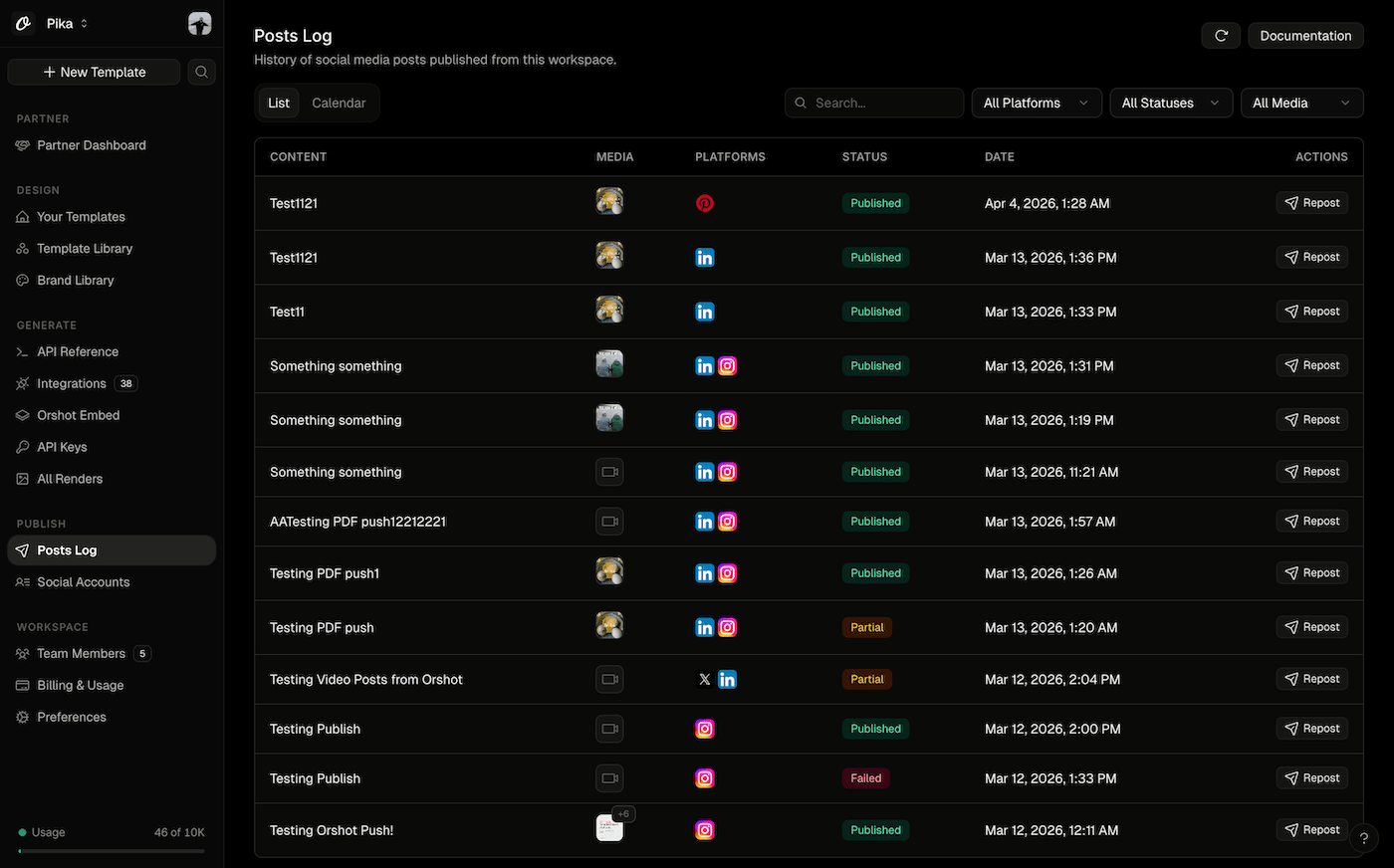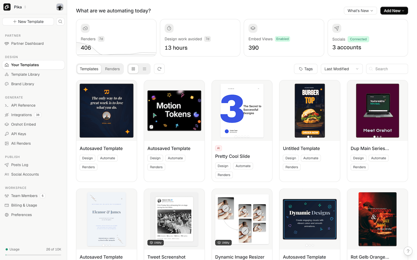 Billing and usage got a proper redesign — you can actually see what you're paying for and where your renders are going. Logs, integrations, team, settings, and socials were all tightened up. Same hierarchy everywhere means less to learn as you move around.
