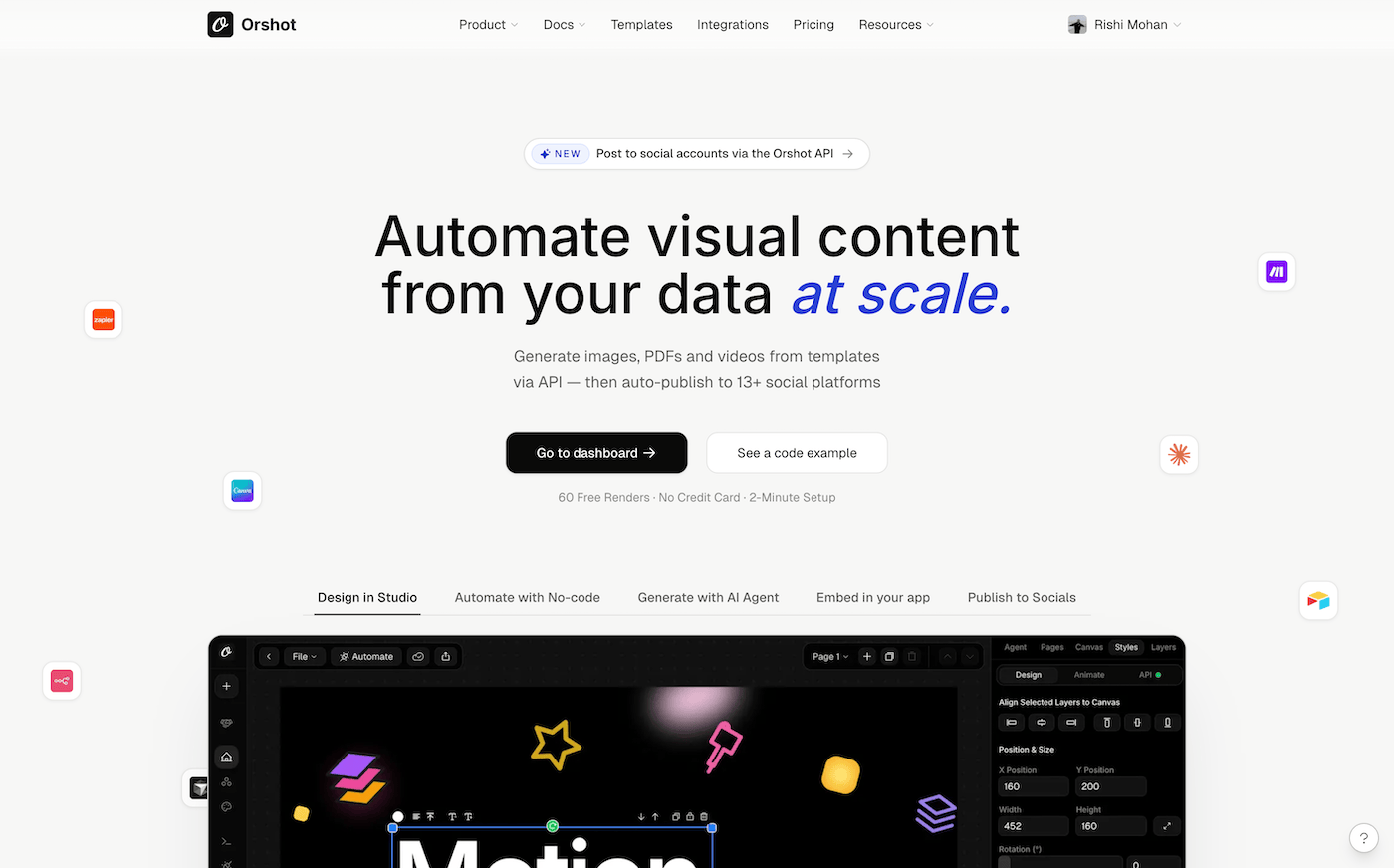 Over the last year we grew fast: Studio, embedded editors, signed URLs, social publishing, storage integrations, AI template generation. Every piece worked, but the surfaces around them drifted. 2.0 pulls everything back together around a single brand and a consistent experience.