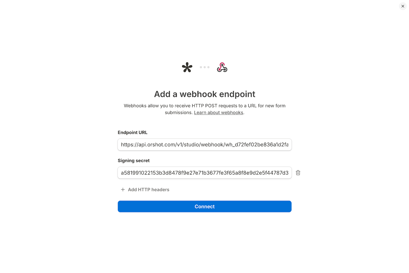Webhook not triggering? Make sure the webhook is enabled in Orshot and the URL is correct in Tally.
