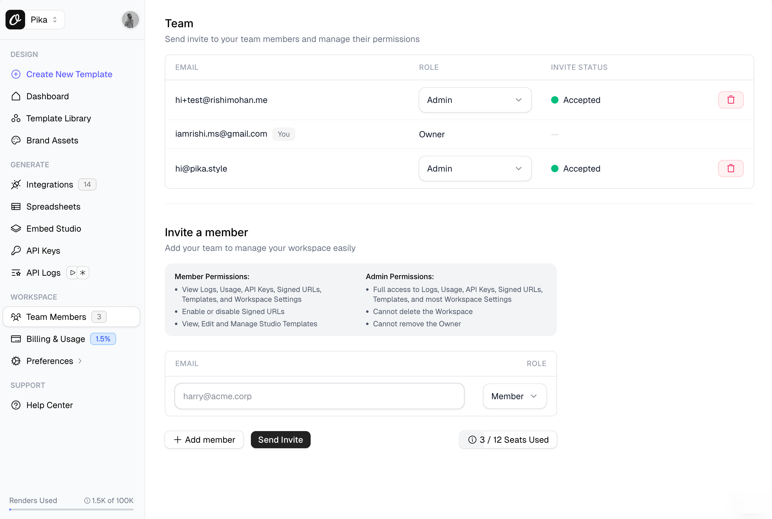 You can manage your team members from the same Team Members section where you: