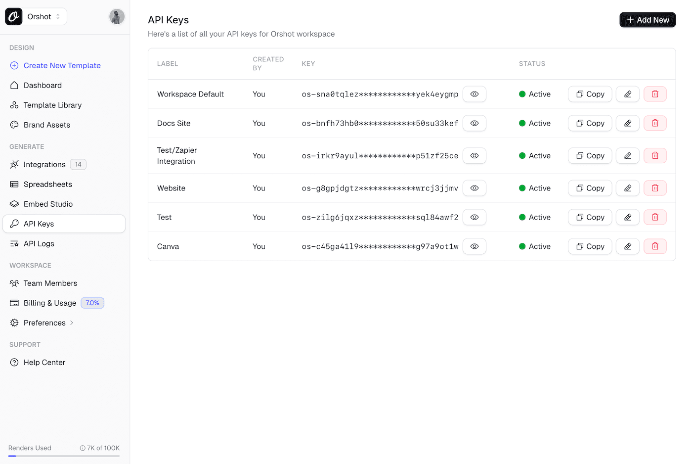 Your API key is required to authenticate all requests to the Orshot API. Follow these steps to get your API key.