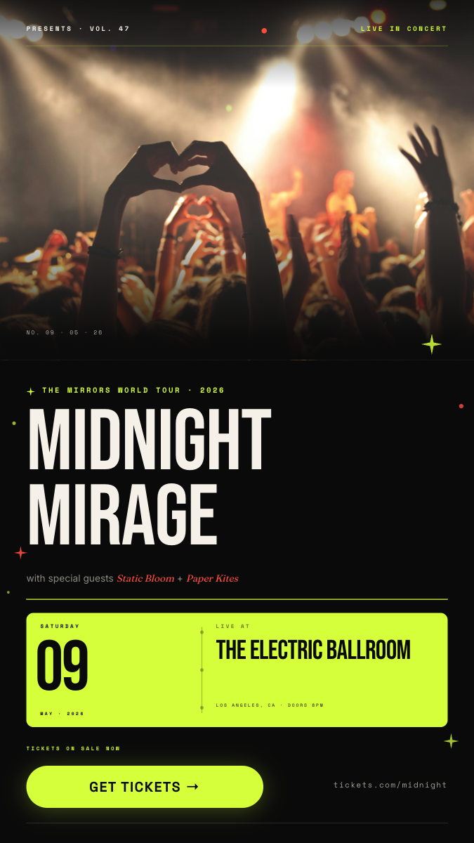 You can generate Midnight Mirage Live — Concert Announcement Instagram Story renders using Rest API